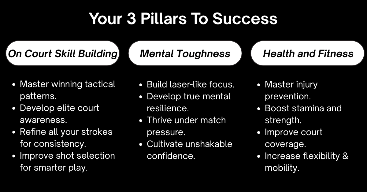 Direction: They will receive weekly tasks to build their mind and body, giving them a clear roadmap to becoming a complete tennis player.